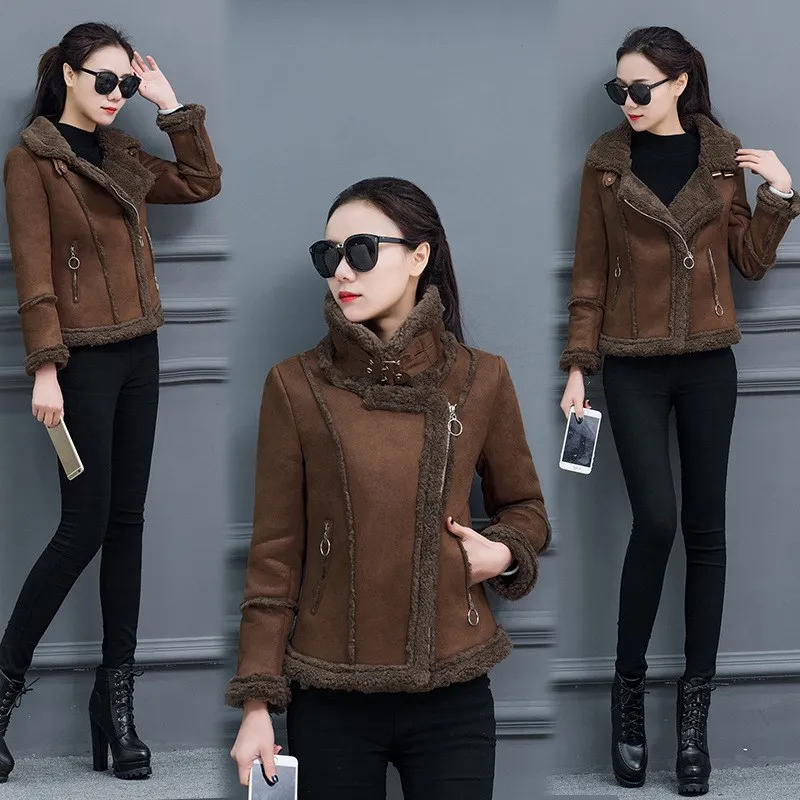 Beste Koop Herfst Winter Su egrave;de Jas Vrouwen Lamswol Korte Motorcycle Uitloper Zwart Roze Dikke Warme Jas Goedkoop